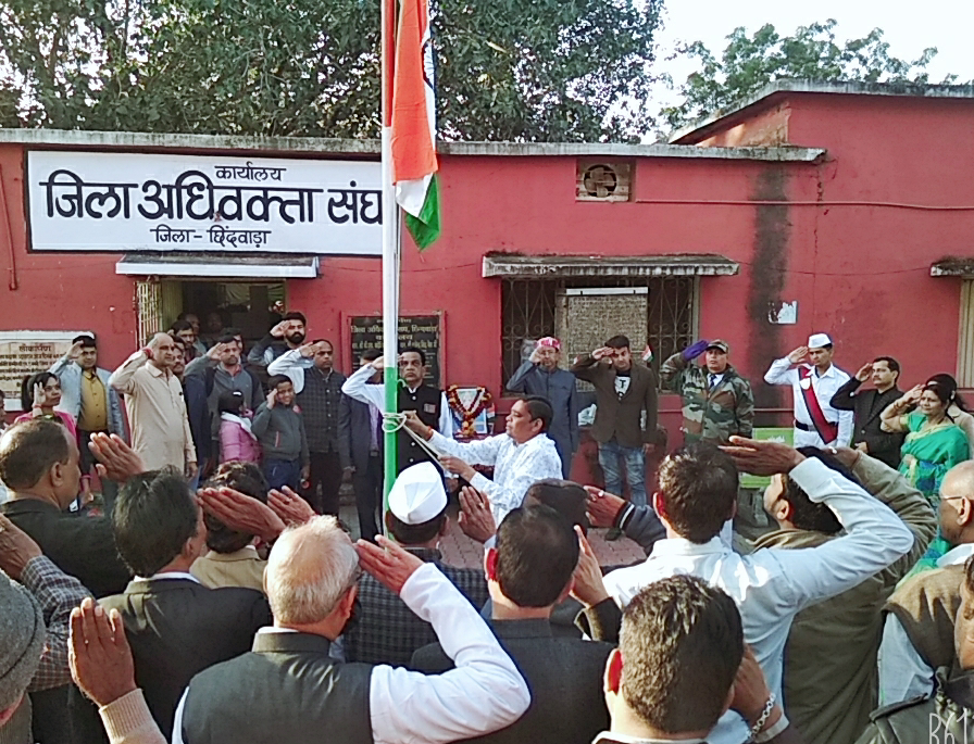 गणतंत्र दिवस के शुभ अवसर पर पूरे देश में जगह-जगह ध्वजारोहण किए गए। शासकीय संस्थानों निजी संस्थानों स्कूलों एवं न्यायालय परिसरों में भी ध्वजारोहण कार्यक्रम आयोजित हुए । इसी श्रंखला में जिला न्यायालय परिसर छिंदवाड़ा में स्थित जिला अधिवक्ता संघ कार्यालय के सामने अधिवक्ताओं ने ध्वजारोहण किया, जिसमें बड़ी संख्या में अधिवक्तागण मौजूद रहे। जिला अधिवक्ता संघ कार्यालय में अधिवक्ता संघ के अध्यक्ष विजय सिंह गौतम व्दारा ध्वजारोहण किया गया। जिसके बाद राष्ट्रगान का वाचन किया गया । इस अवसर पर जिला अधिवक्ता संघ अध्यक्ष एवं सभी सदस्यों तथा अधिवक्ताओं ने जिला प्रदेश एवं देशवासियों को गणतंत्र दिवस की शुभकामनाएं दी।