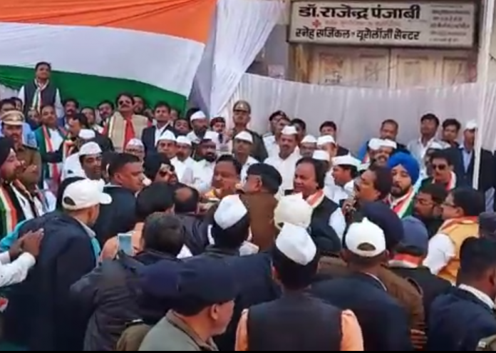 इंदौर शहर कांग्रेस कमेटी के सामने कांग्रेसी नेता आपस में कुछ इस तरह भिड़े मानों कोई बाजारू झगड़ा हो रहा हो । चिंता की बात तो यह है कांग्रेसी आपस में तब भिड़े जब प्रदेश के मुख्यमंत्री वहां पहुंचने वाले थे। एक तरफ प्रदेश के मुखिया कमलनाथ पार्टी को एकजुट करने कई बड़े त्याग दे रहे हैं और परिश्रम कर रहे हैं तो दूसरी ओर लाते घुसे उनकी पूरी मेहनत पर पानी फेर रहे हैं। कांग्रेसियों के बीच आपस में हुई इस तड़ा तड़ा में थप्पड़ की गूंज दिल्ली तक जा पहुंची, तो उधर दिल्ली में बैठे एक प्रवक्ता अपने मजाकिया अंदाज में यह कहने से भी पीछे नहीं हटे कि, गुटबाजी डायन खाए जात है …… इंदौर में गणतंत्र दिवस के झंडावंदन कार्यक्रम में कांग्रेसी नेताओ की आपसी मोहब्बत तब देखने को मिली, जब कांग्रेस नेता ही आपस मे झड़प करते हुए एक दूसरों पर थप्पड़ और घुसे चलाने लगे । नजारा ऐसा था कि जमकर मारपीट हुई। देवेंद्र यादव और चन्दू कुंजिर के बीच थप्पड़ों की बरसात सोशल मीडिया पर वीडियो के जरिये यू वायरल हुई कि आधे कांग्रेस नेताओं को वायरल हों गाय ।