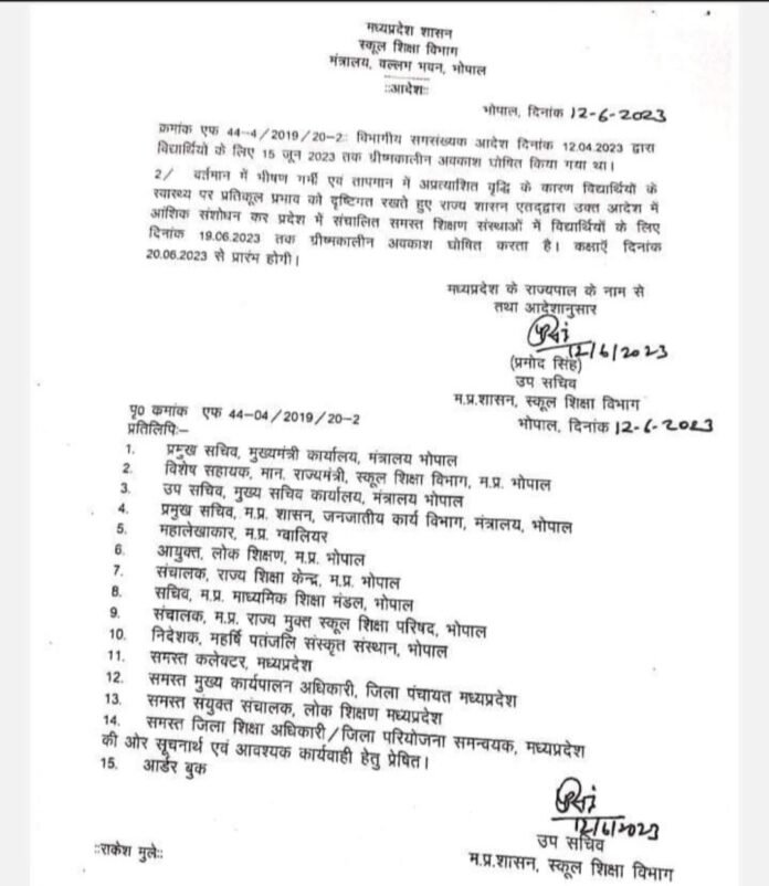 अब विद्यार्थियों के लिए 19 जून तक ग्रीष्मकालीन अवकाश घोषित