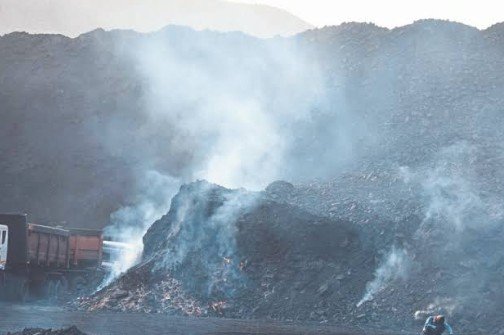 बंकर के समीप उठ रहा धुंआ, प्रबंधन की लापरवाही से लगी आग…
