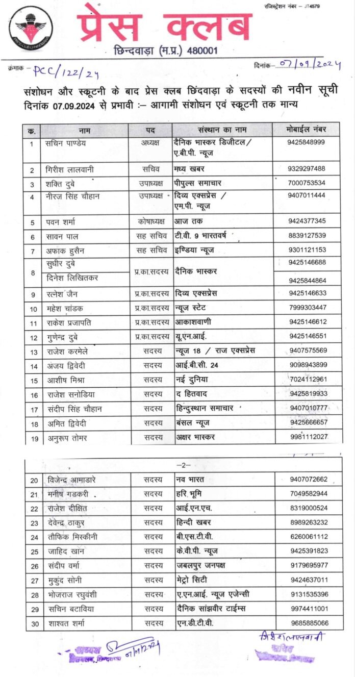 छिंदवाड़ा प्रेस क्लब कार्यकारिणी की मीटिंग हुई…