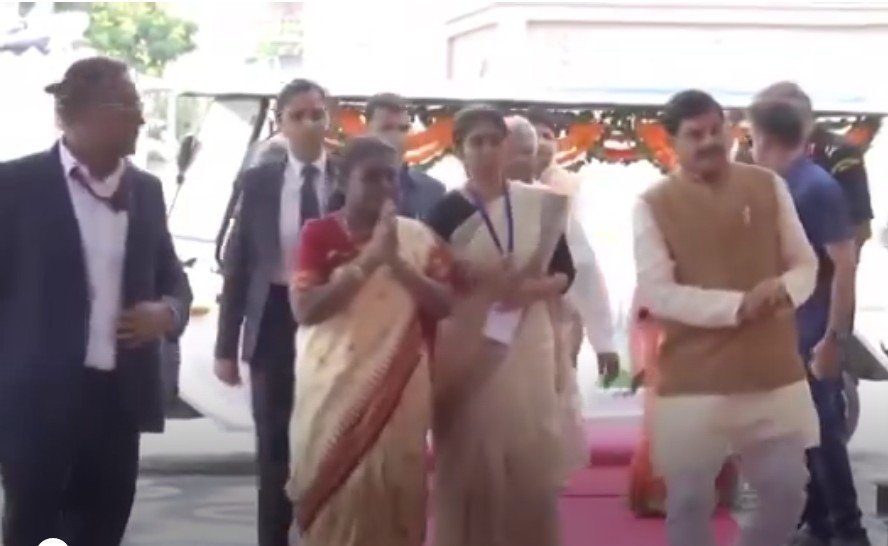 स्टेट डेस्क – महामहिम राष्ट्रपति श्रीमती मुर्मु जी द्वारा त्रिवेणी सभा मण्डपम, महाकाल लोक परिसर, उज्जैन का भ्रमण कर महाकाल लोक में पत्थर की मूर्तियों का निर्माण करने वाले शिल्पकार ईश्वर चन्द्र महाराणा, आदित्य महाराणा, सुरेश कुमार ओझा, अक्षय कुमार महाराणा से संवाद किया गया।