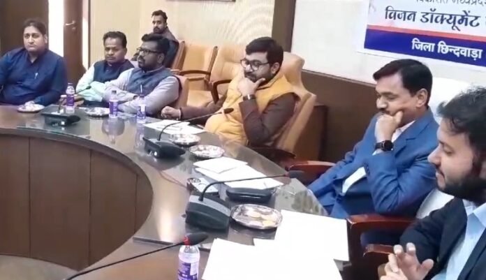 स्टेट डेस्क/छिन्दवाड़ा- जिले के विकास को नई दिशा देने और मध्यप्रदेश सरकार के वर्ष 2047 तक विकसित भारत और विकसित म.प्र. के विजन को साकार करने के उद्देश्य से कलेक्टर कार्यालय के सभाकक्ष में जिला स्तरीय जन संवाद कार्यक्रम का आयोजन किया गया। इस कार्यक्रम में मुख्य अतिथि के रूप में सांसद विवेक बंटी साहू और अध्यक्षता कलेक्टर शीलेन्द्र सिंह ने की। कार्यक्रम में नगरपालिक निगम के महापौर विक्रम अहके, टीकाराम चन्द्रवंशी, अजय सक्सेना एवं अन्य जनप्रतिनिधि तथा जिले के नागरिकों और विभागीय अधिकारियों ने सहभागिता की एवं जिले के समग्र विकास के लिए अपने बहुमूल्य सुझाव दिए।