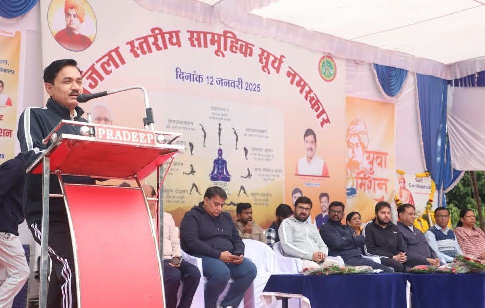 इस अवसर पर सांसद विवेक साहू, नगर पालिक निगम महापौर विक्रम अहके, कलेक्टर शीलेन्द्र सिंह, एसपी अजय पांडे, सीईओ जिला पंचायत अग्रिम कुमार, एडीएम के.सी.बाेपचे सहित अन्य अधिकारियों व विद्यार्थियों द्वारा सामूहिक सूर्य नमस्कार किया गया।