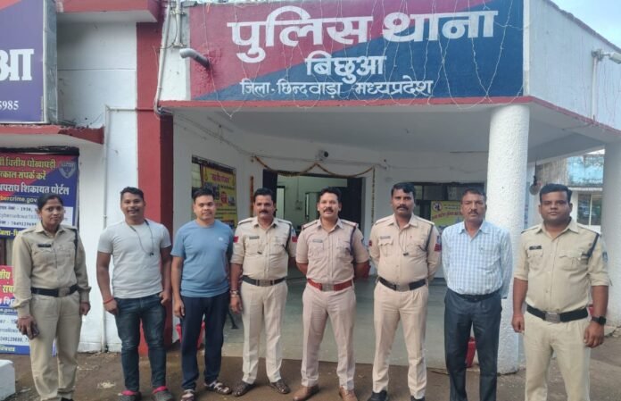 गिरफ्तार आरोपियो में नरेन्द्र सिंह पिता कुबेरसिंह ठाकुर उम्र 41 साल निवासी ग्राम उल्हावाड़ी थाना बिछुआ, सियाराम पिता रामख्याल चौरिया उम्र 21 साल निवासी ग्राम नवेगांव थाना चांद, दीपक उर्फ चिंटू पिता भुवनसिंह ठाकुर उम्र 42 साल निवासी ग्राम उल्हावाड़ी, ओमप्रकाश पिता फग्गू चौरे उम्र 29 साल निवासी ग्राम नवेगांव थाना चांद, बसंत पिता गोपाल अमरोदे निवासी नवेगांव गोंड़ थाना चांद को गिरफ्तार किया गया है। कार्यवाही में मुख्य रूप से थाना प्रभारी सतीश उइके, प्र. आर. प्रमोद धुर्वे, आर. फुलभान परते, आर. राकेश उइके, आर. राकेश सेवटकर की खास भूमिका रही।